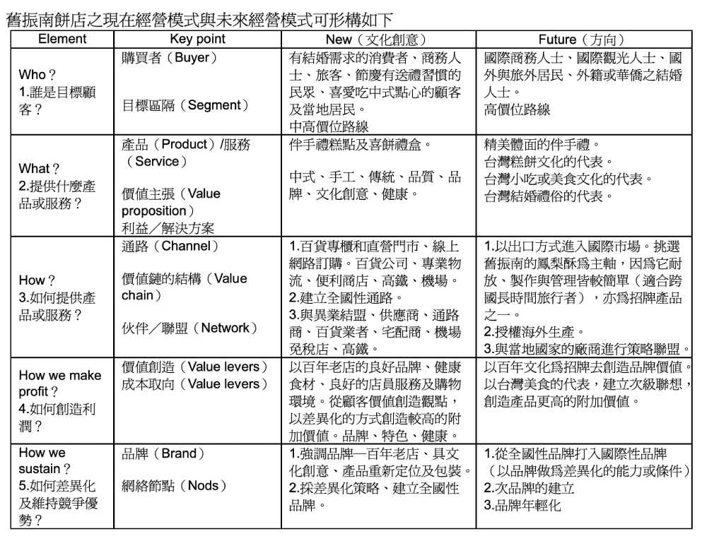 舊振南餅店之現在經營模式與未來經營模式可形構如下