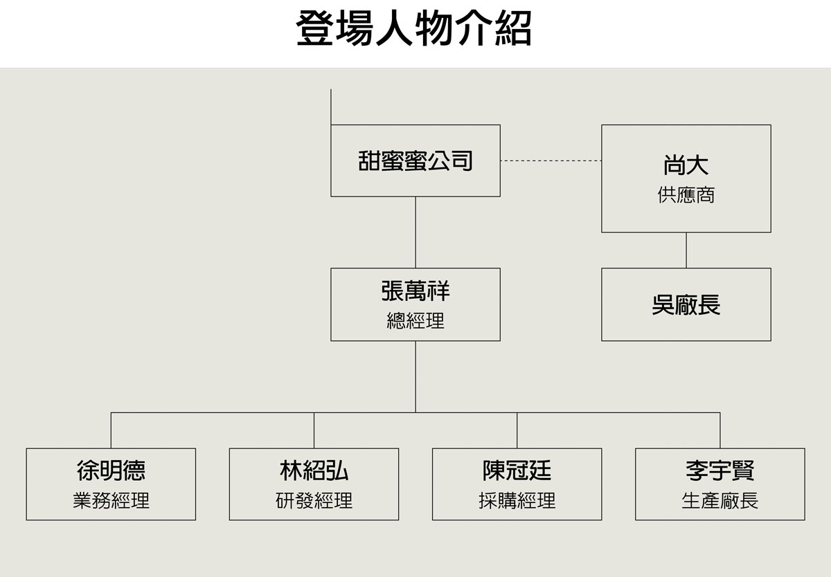 以生產果糖起家的甜蜜蜜公司,為了因應健康意識抬頭的消費市場,與代工廠商尚大合作推出健康醋飲,占多數營收。然而,尚大開始頻繁漲價,並且開始併購其他小廠,頗有獨霸供應鏈、搶占主導權的意圖;另一方面,若甜蜜蜜打算自行生產,也有成本與研發的挑戰。無論選擇何種方案,都有迫在眉睫的壓力,總經理張萬祥必須盡快做決定。